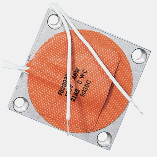 Designed for freeze and condensation protection, Watlow's enclosure heaters are rugged, reliable and safe to operate. These rectangular-shaped, wire-wound silicone rubber enclosure heaters can be ordered by themselves with adhesive or vulcanized to an aluminum mounting plate. A thermostat can be attached to the heater or mounted separately. Pictured are enclosure heater units with thermostat on heater in foreground and heater with remote thermostat in background.